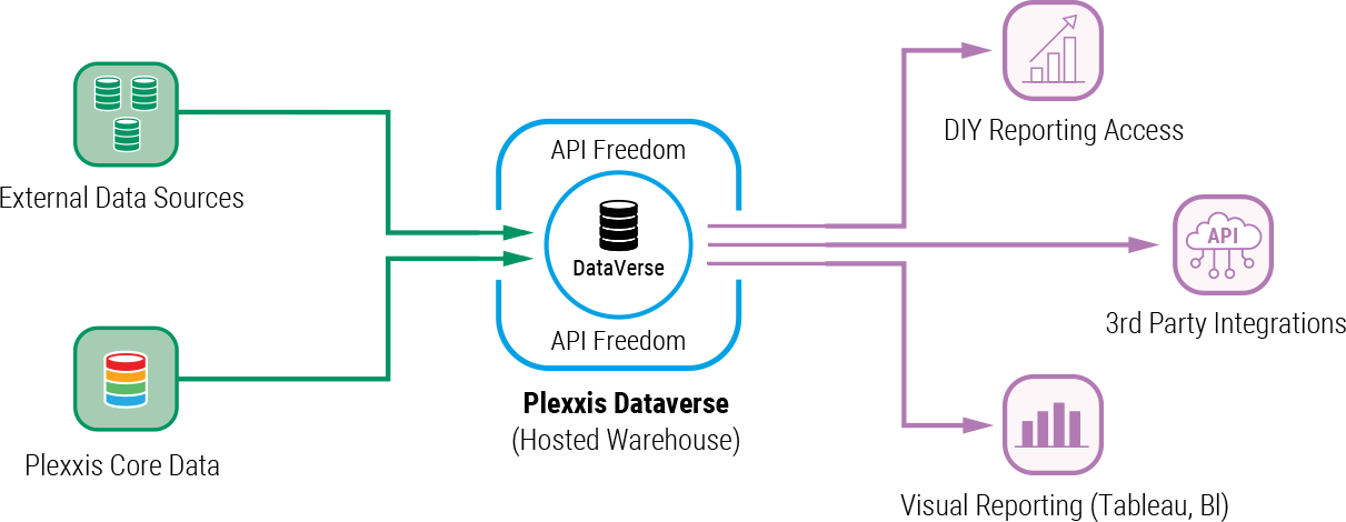 Dataverse Connected Intelligence: Data warehouse for Plexxis data plus data from external sources and API freedom for integrations.